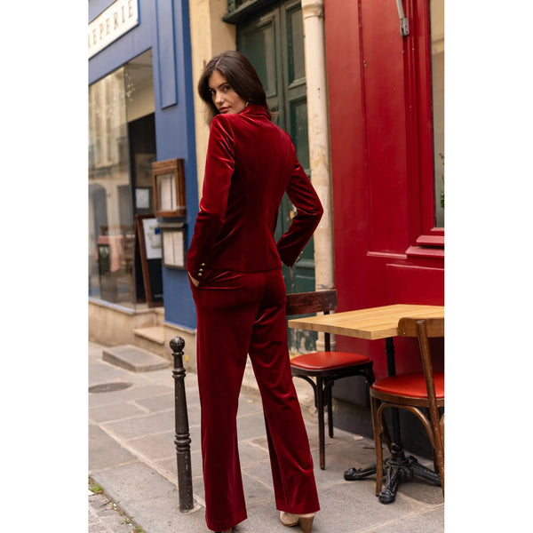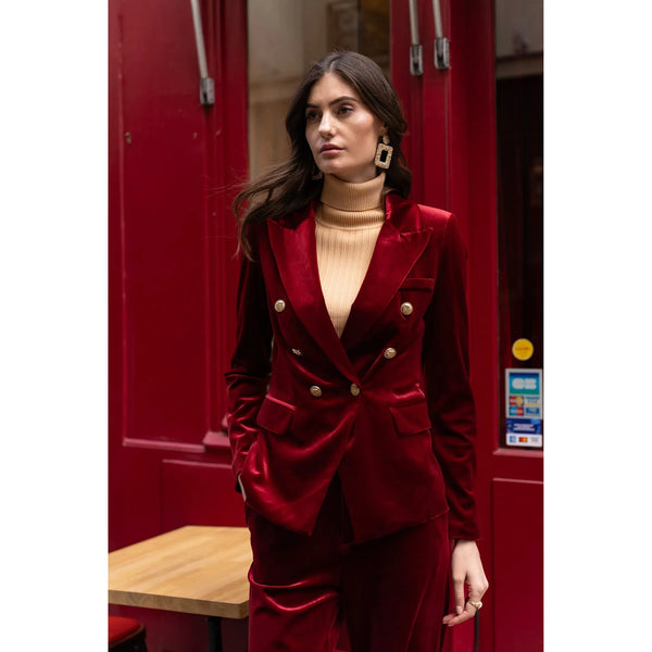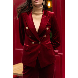 Choklate Paris Ladies Velvet Double Breasted Blazer - Bordeaux