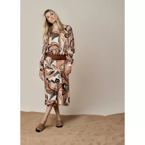 Indi and Cold Ladies Pinstripe Linen Dress - Camel
