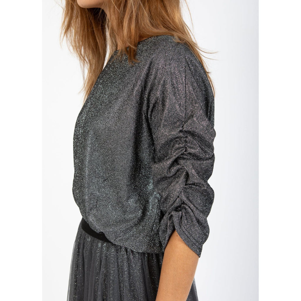 A top with a touch of glamour. This shimmer top is perfect for festive occasions. The shiny surface gives a luxurious expression, which can be styled with both a skirt and pants to create different looks.
