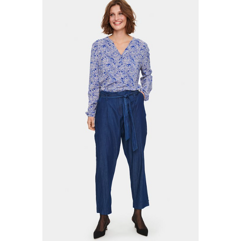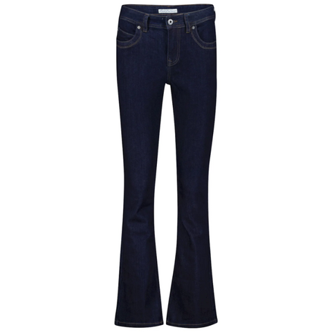Calgary Women's Stretch Cotton Collarless Denim Jacket in Mid Blue - Amara Reya