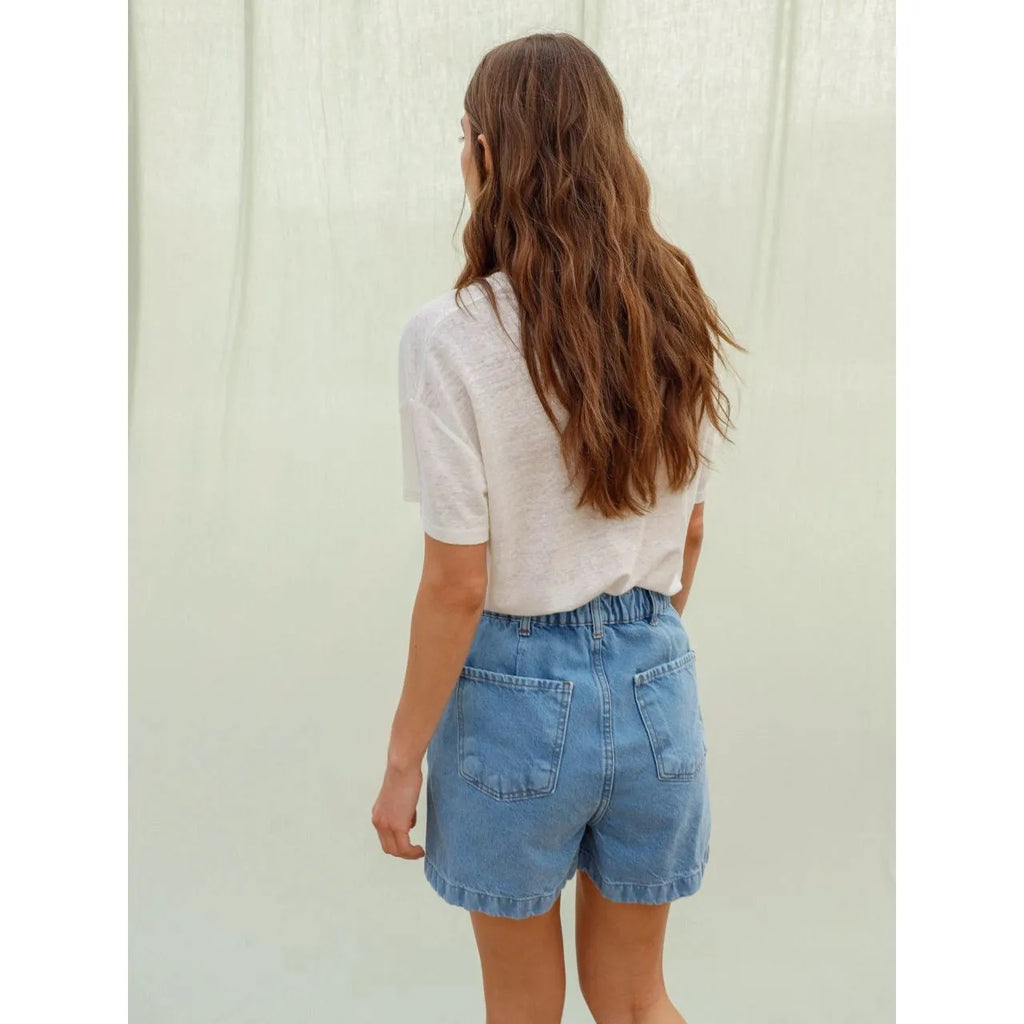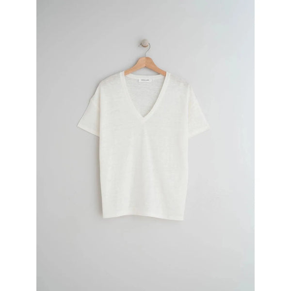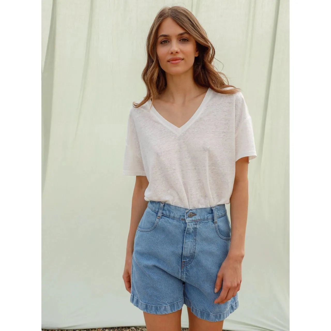 Indi and Cold Ladies V-Neck Linen T-Shirt - White