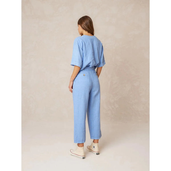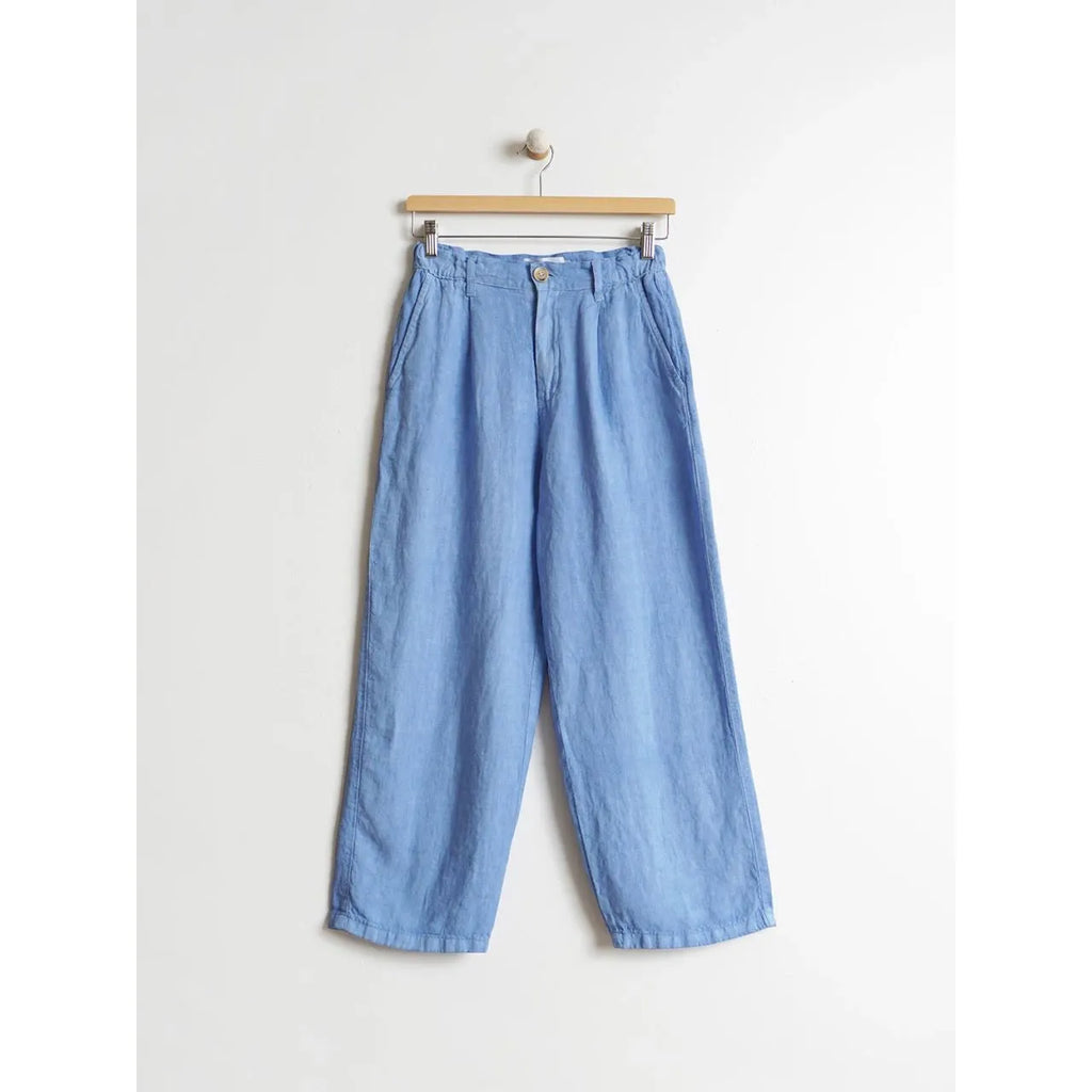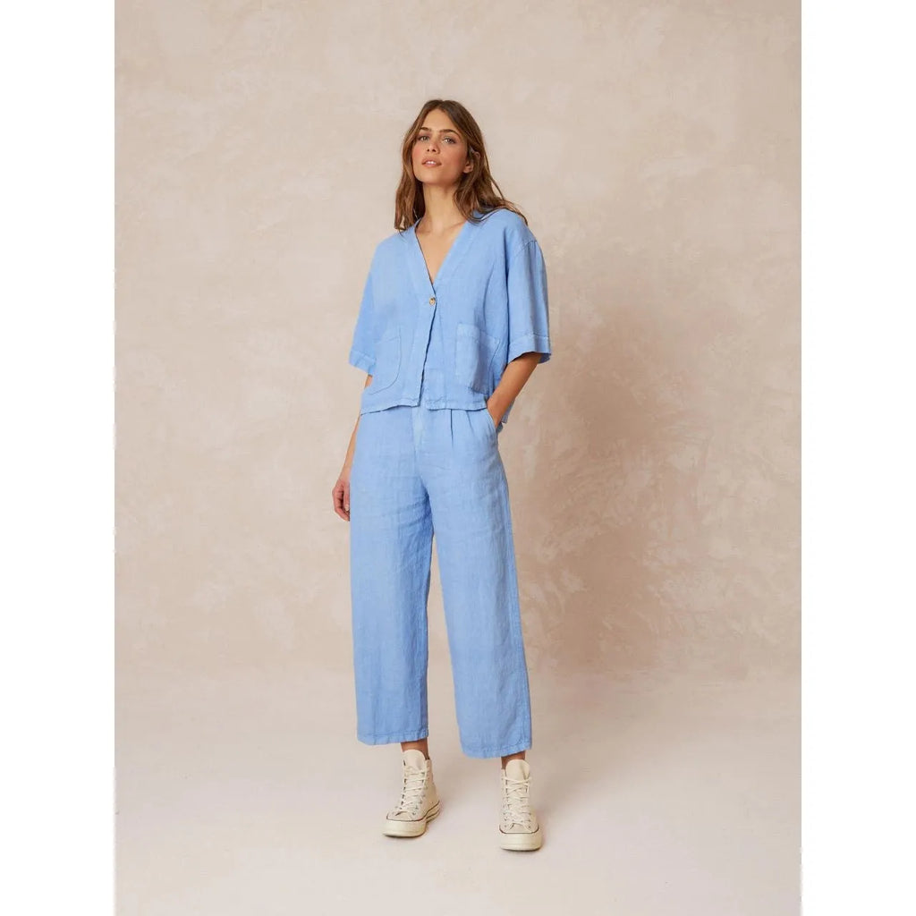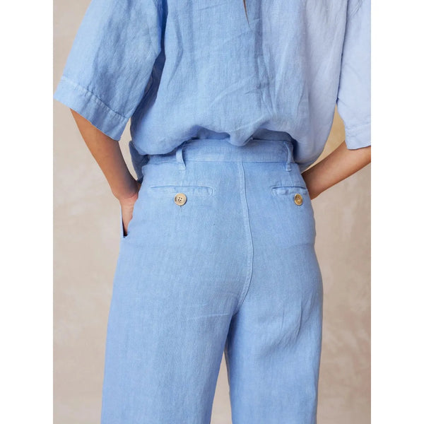Indi and Cold Ladies Linen Crop Trousers - Glacial Blue