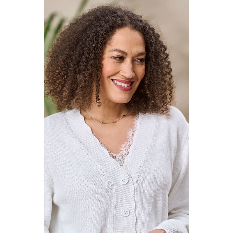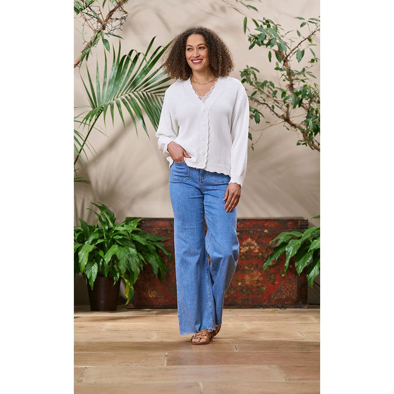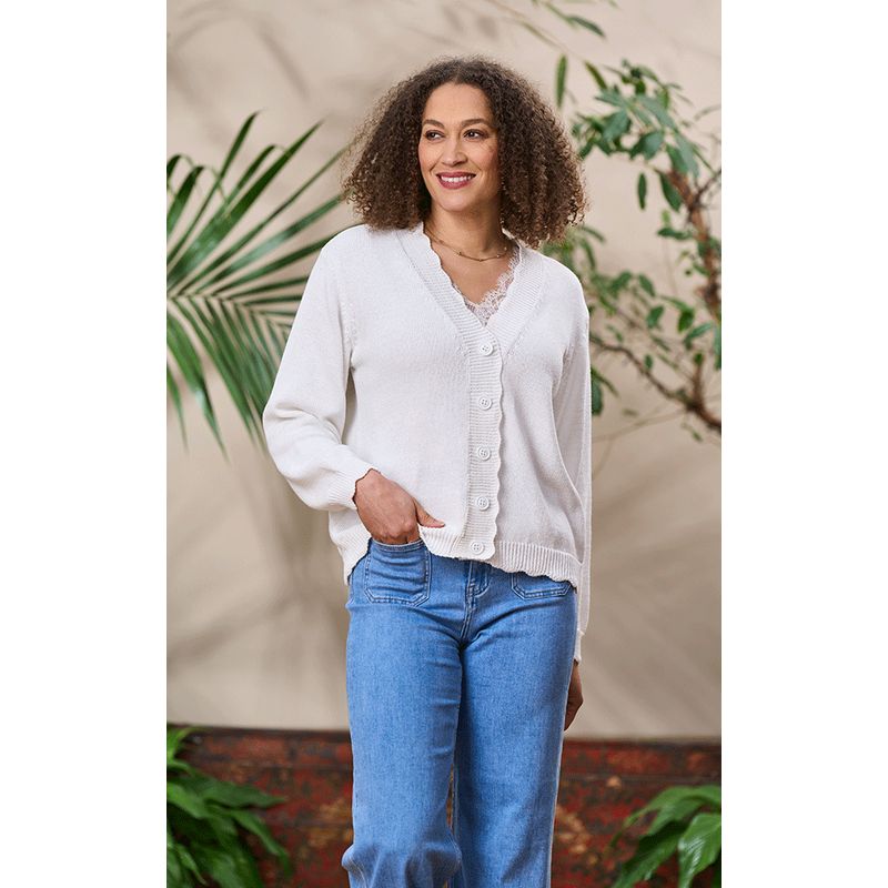 Luella Ladies Falmouth Button Up Cotton Cardigan w/Scalloped Trim Ivory
