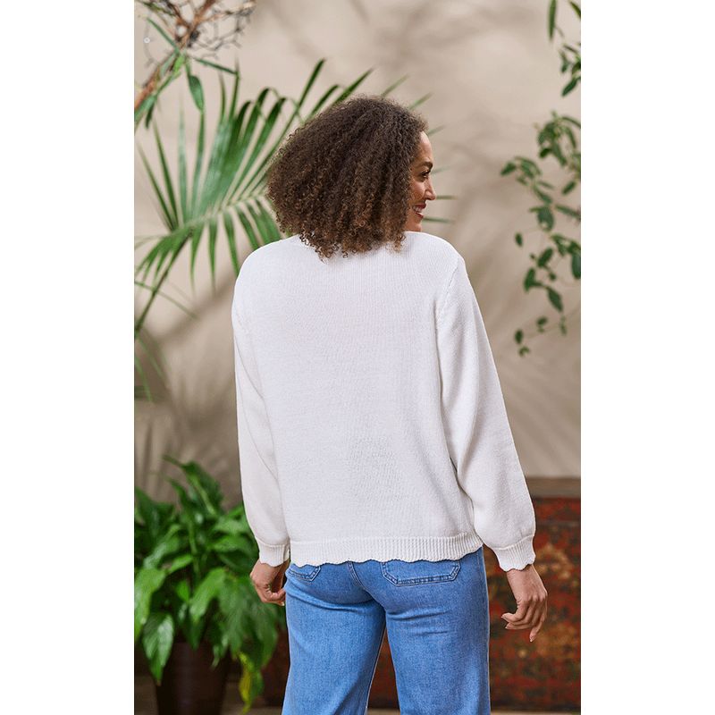 Beautifully designed in a classic button-up silhouette, the Falmouth Cotton Cardigan features subtle scalloped edging for a soft, decorative finish. The timeless ivory shade makes it a versatile piece for layering across seasons