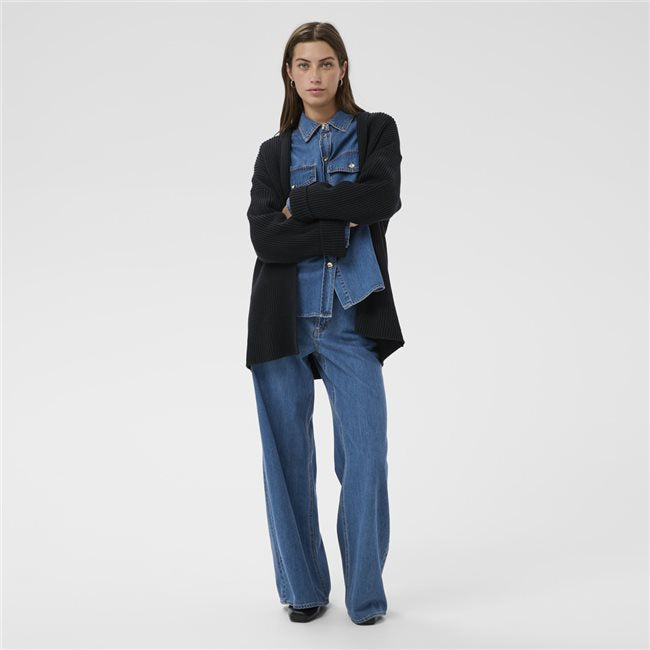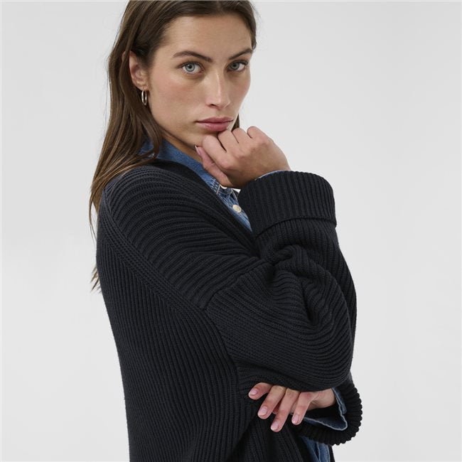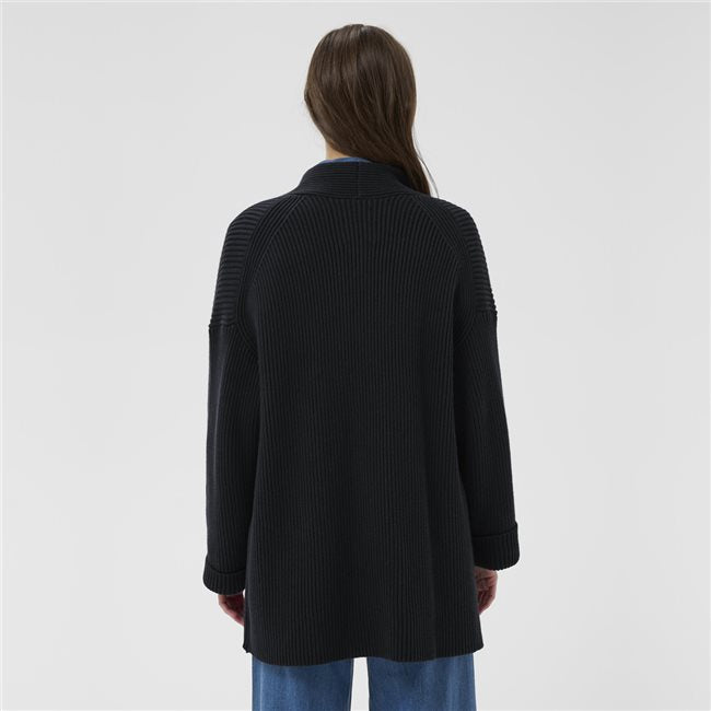 This open-front cardigan offers a stylish and versatile layer with its clean design and elegant drape. Made from a soft blend of 93% Cotton (Organic), and 7% Nylon, it provides a smooth, comfortable feel. The ribbed knit detailing adds subtle texture, while the long sleeves and baggy fit make it perfect for layering over a variety of outfits.