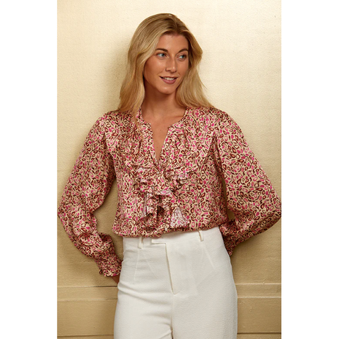 Luella Ladies Cotton Shirt Printed Hibiscus - Pattern Pink