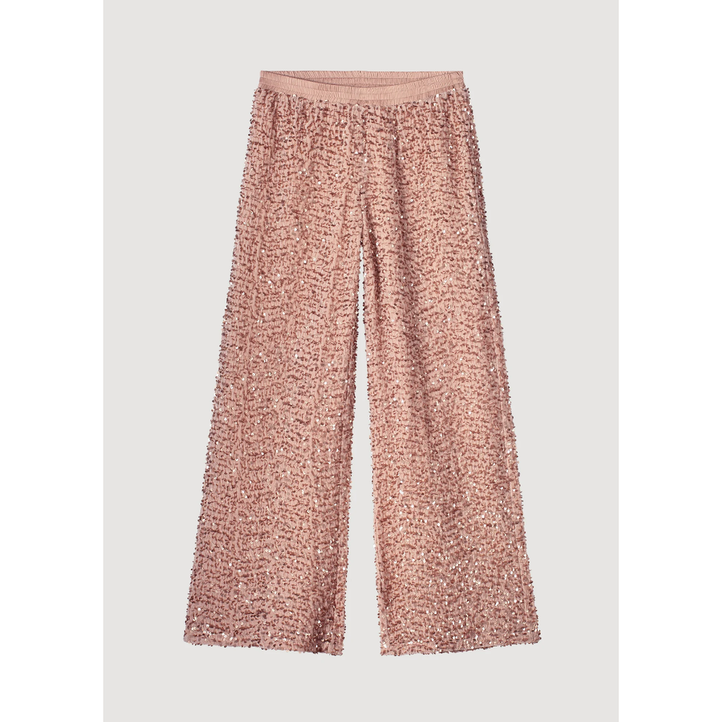 Long trousers made of stretchy sequin fabric with a roomy fit. The pants have an elastic waistband and are lined.