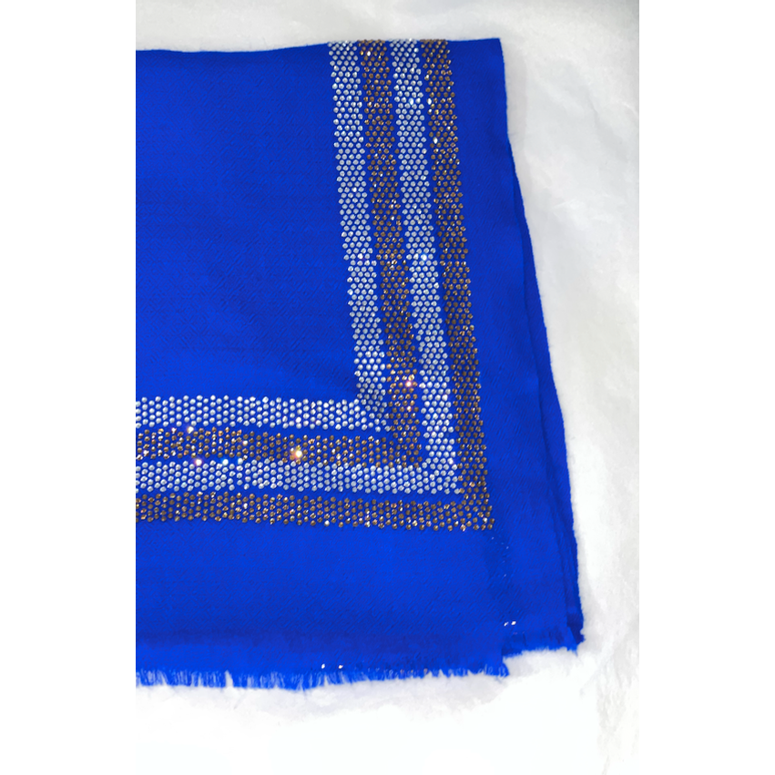 cobalt blue cashmere pashmina with gold and silver swarovski crystal border