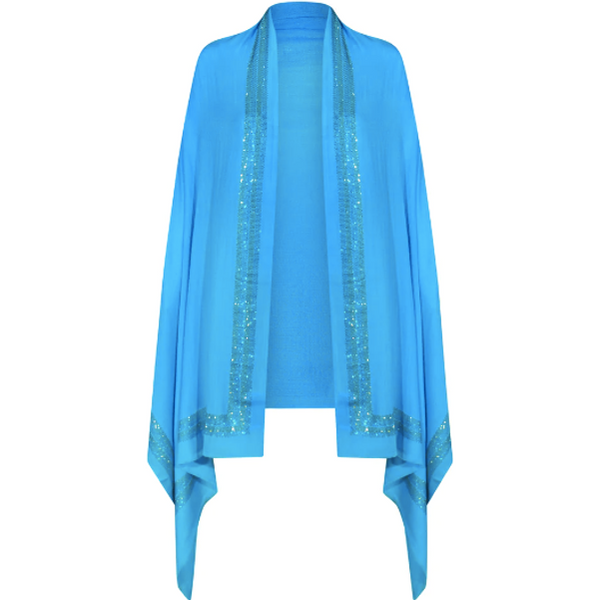 Alison Van Der Lande Ladies Cashmere/Swarovski Wrap - Turquoise/Gold