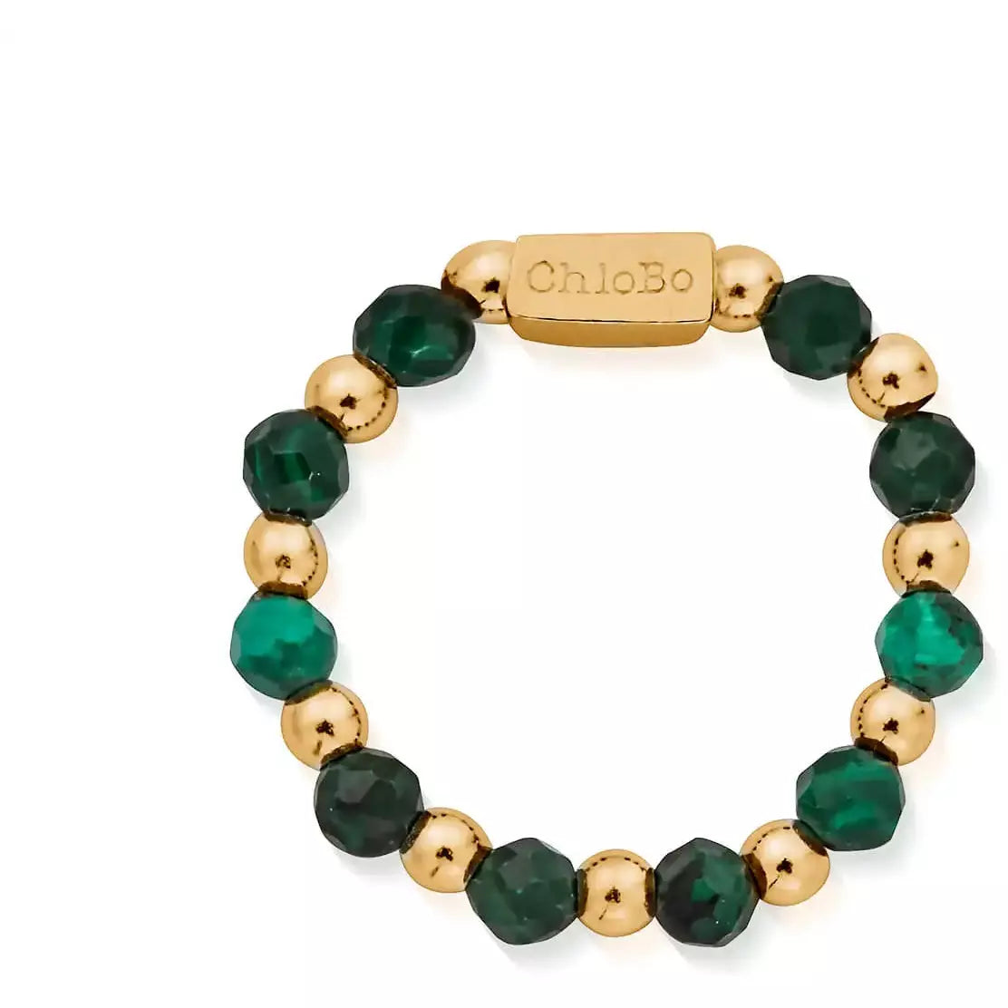 Whether you stack your rings together or just wear one, it’s time to add some colour by adding the semi-precious stone malachite to your style. The Malachite Ring of Protection alternates 925 sterling silver or 18ct gold plated beads amongst the deep green hues of malachite. The meandering swirls of malachite are believed to protect you in whichever direction life takes you.