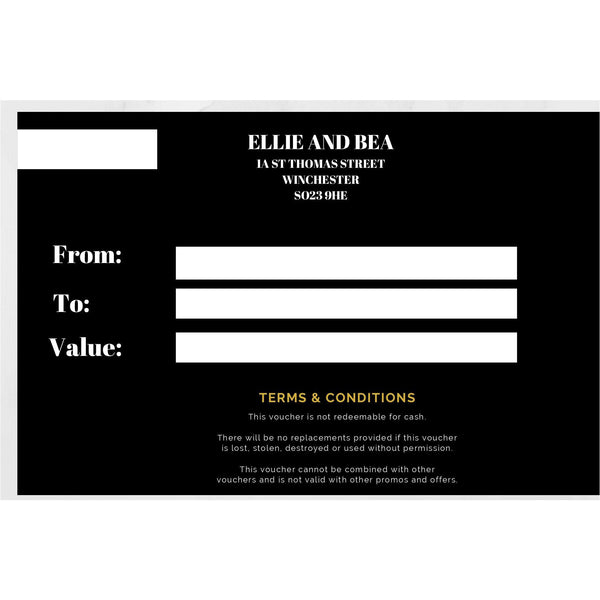 An Ellie & Bea gift card can be purchased in denominations of £10, £25, £50, £100 and £150. They can be used online or within our shop in Winchester.
