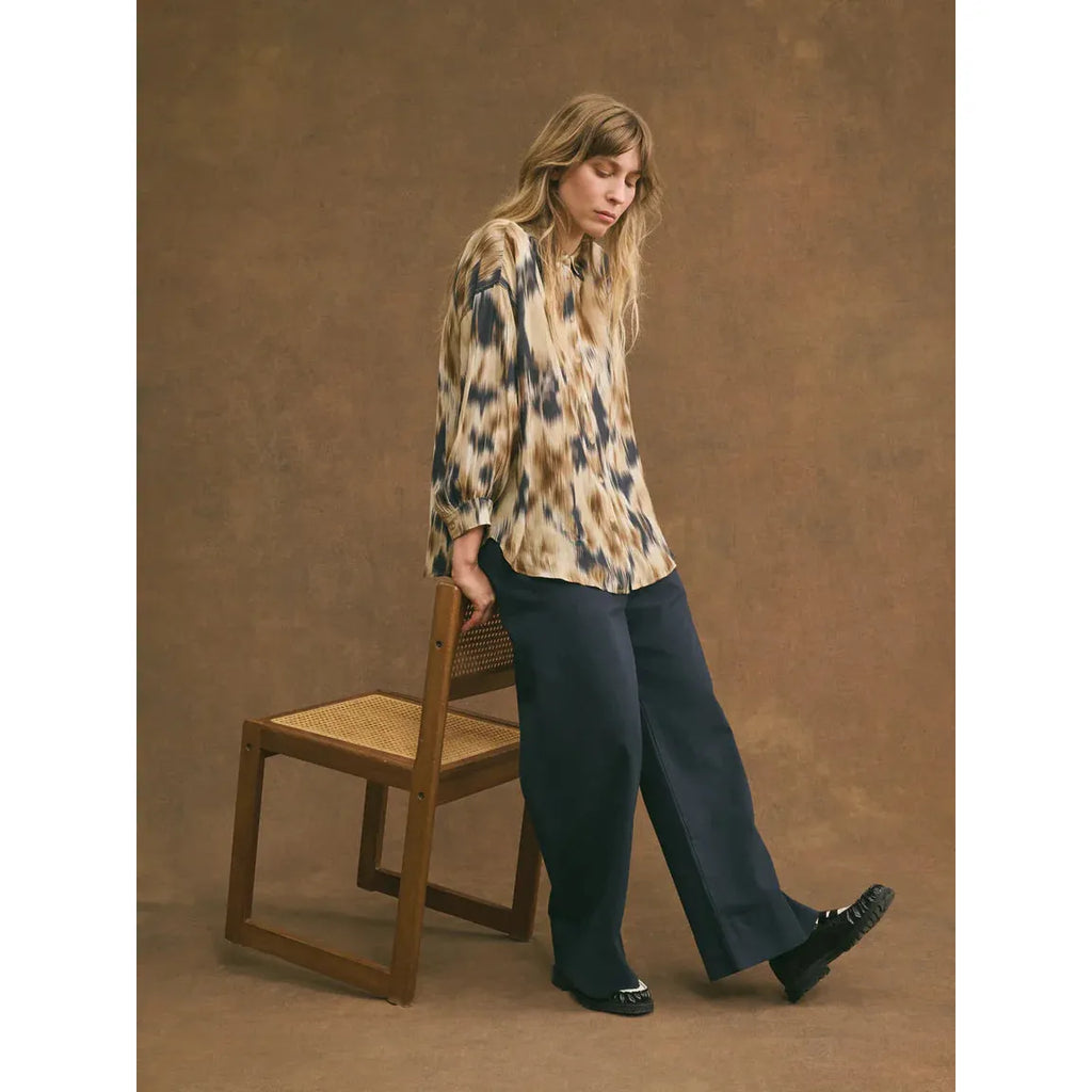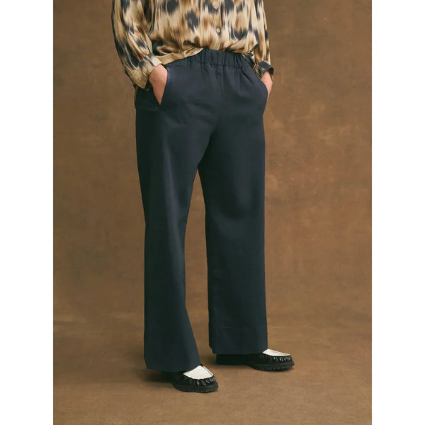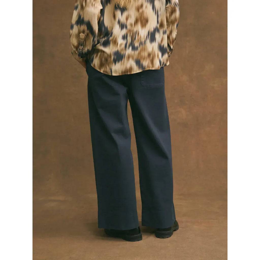 These Jimmy trousers by Hod Paris are super comfortable, casual and chic. Adaptable to all styles, it has a straight and wide cut in a structured heavy cotton slightly cropped making them ideal with sneakers and boots. Available in cream, navy or khaki.