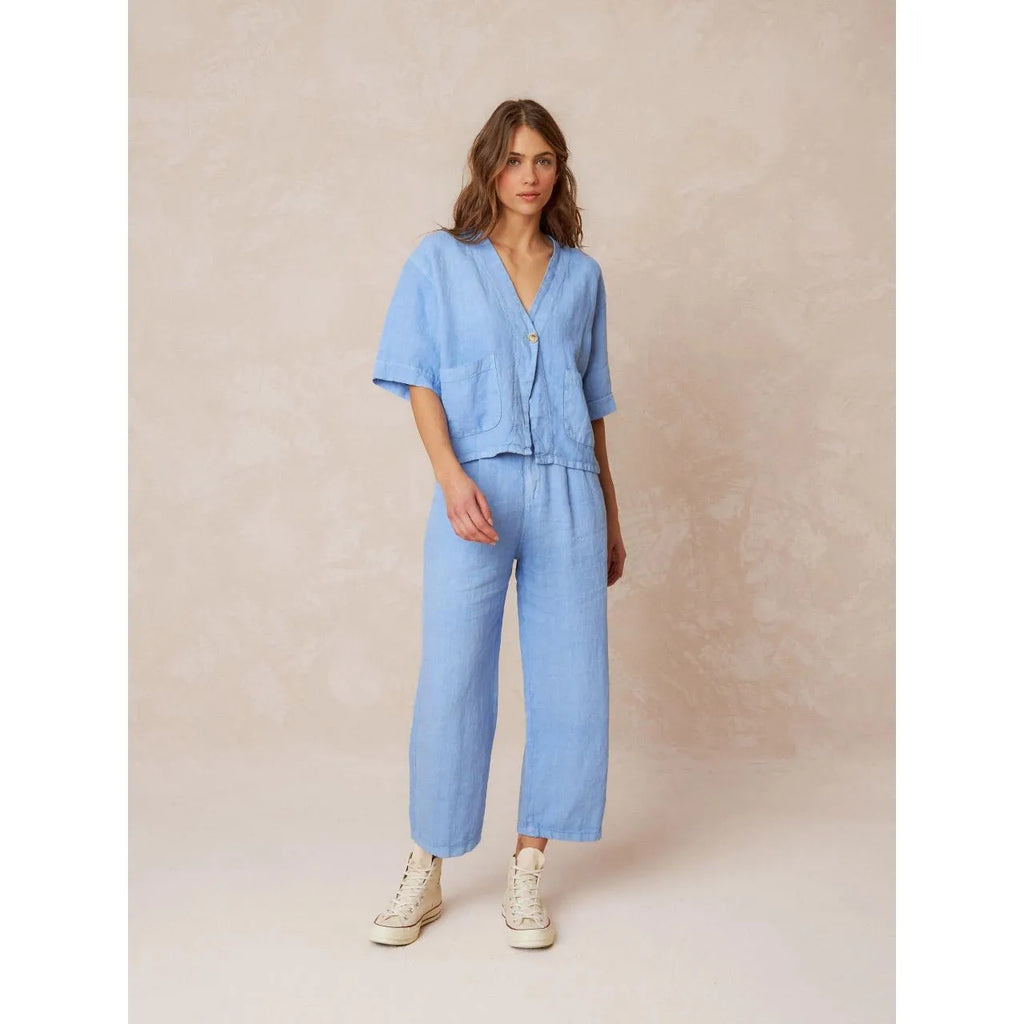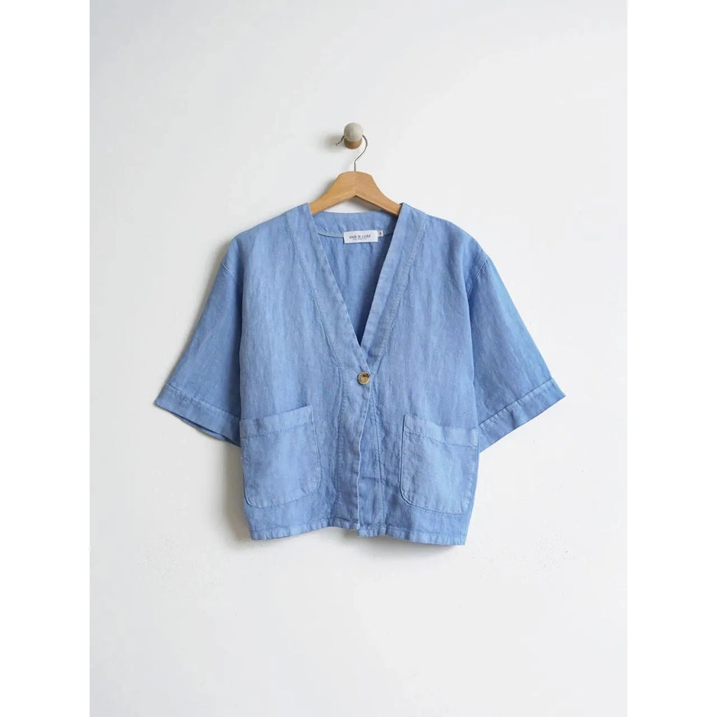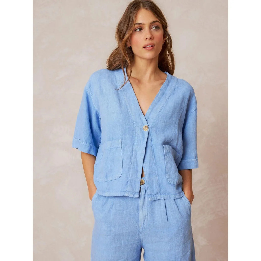 Indi and Cold Ladies Linen Crop Overshirt - Glacial Blue