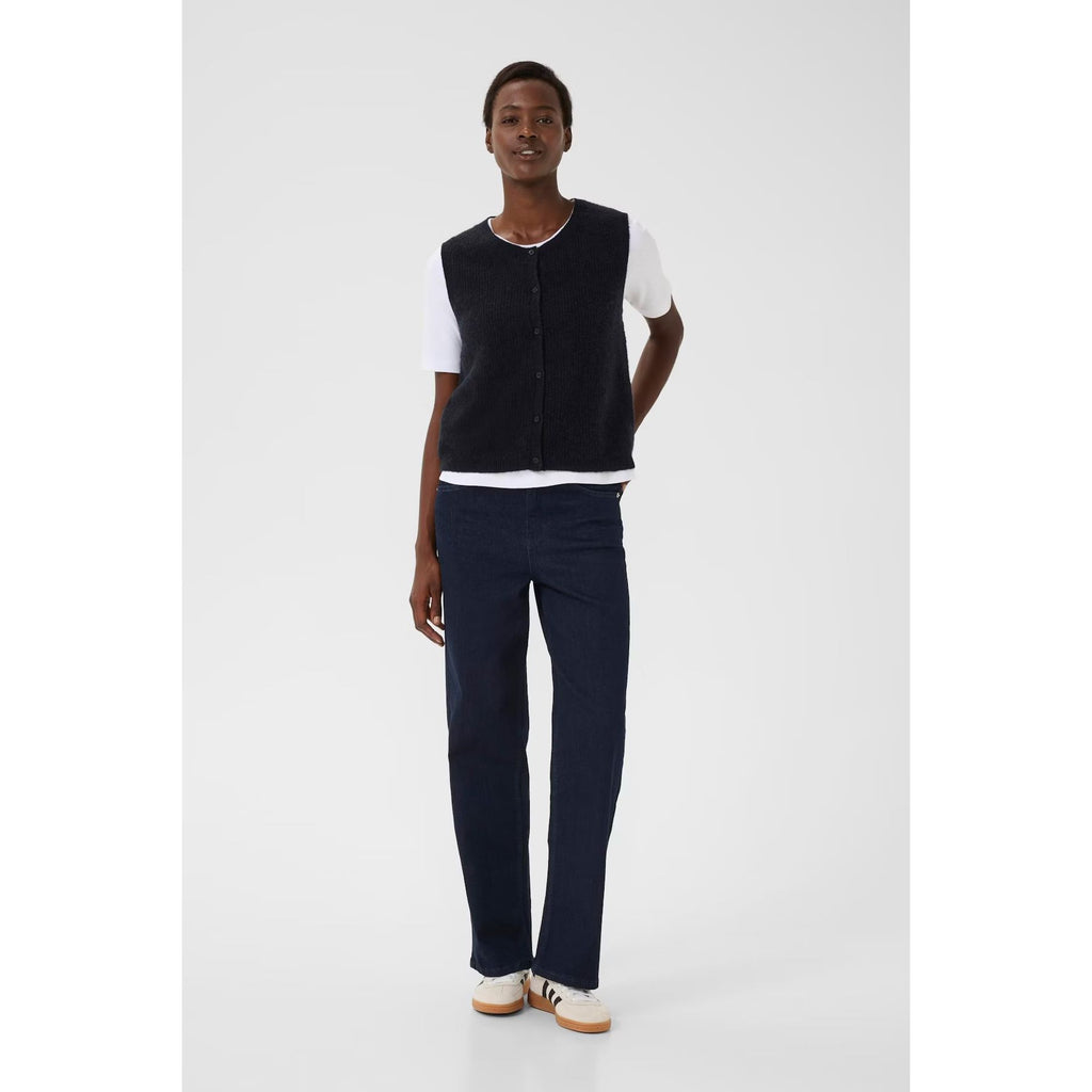 The model is 180 cm tall and wears a size M. This knitted vest with a round neckline and front buttons is made from a soft, fuzzy material that offers a relaxed yet refined look. Style it over a T-shirt or shirt for a layered outfit during the colder months.