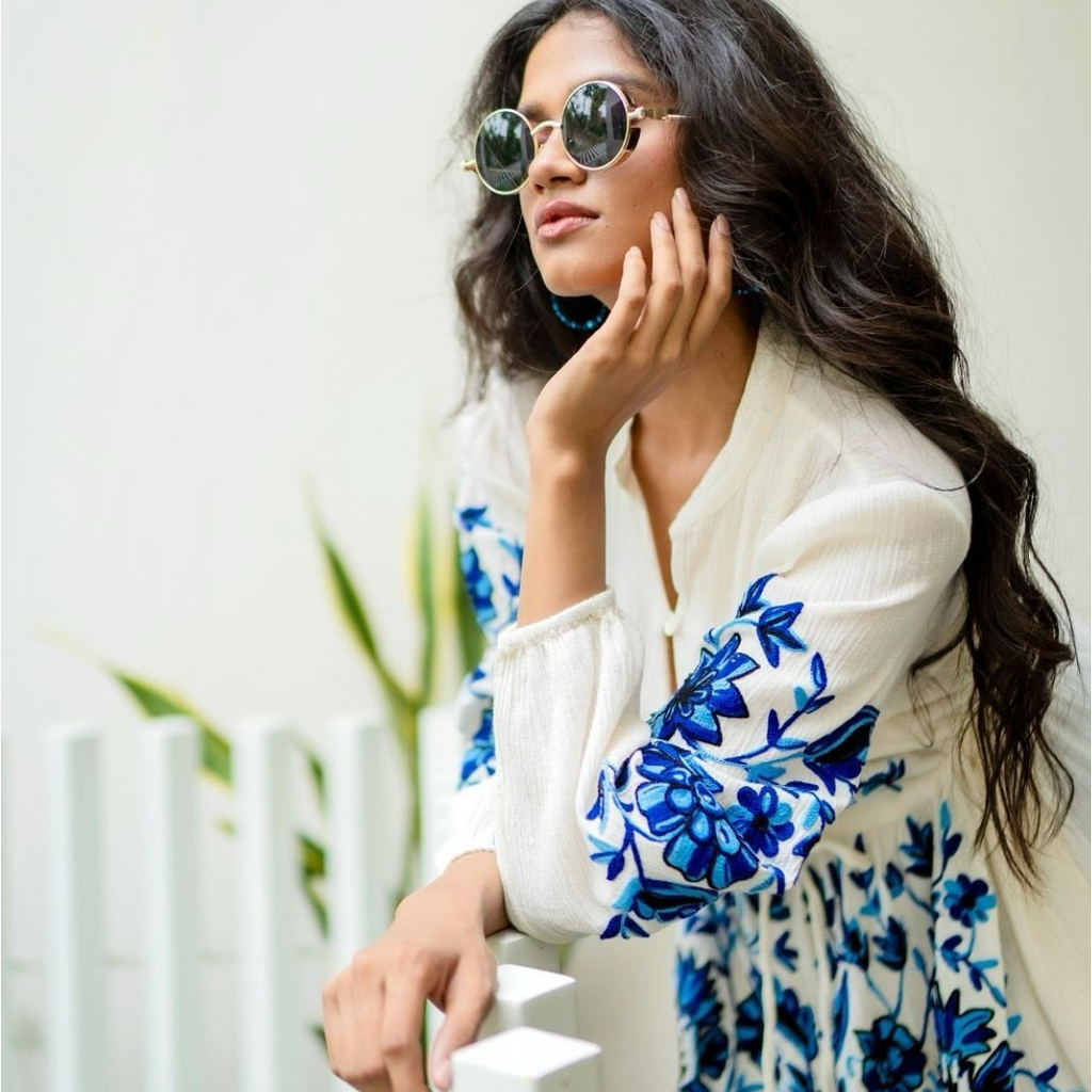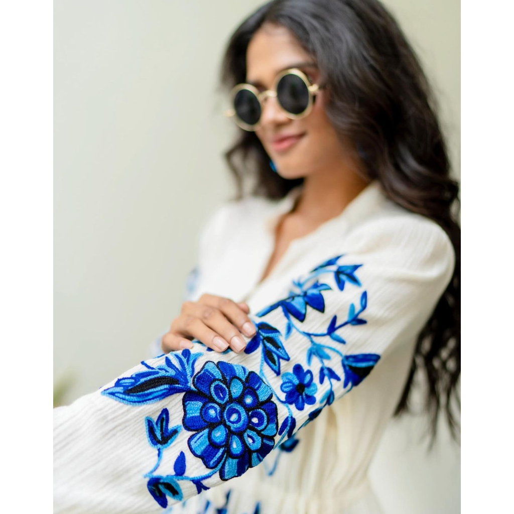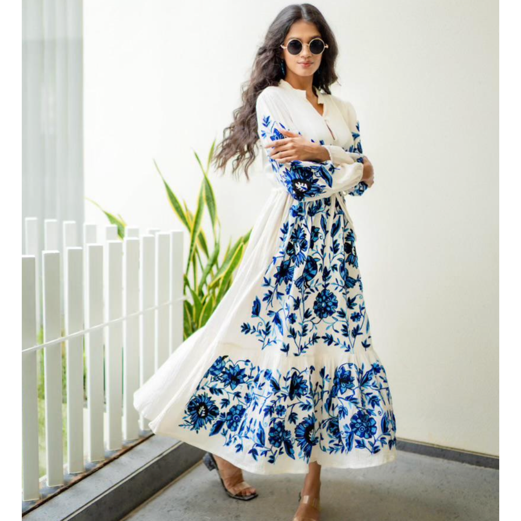 Made from Ethereal White Cotton Dress featuring Intricate Blue Embroidery, aTimeless Blend of Craftsmanship and Comfort!