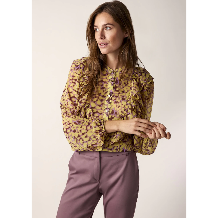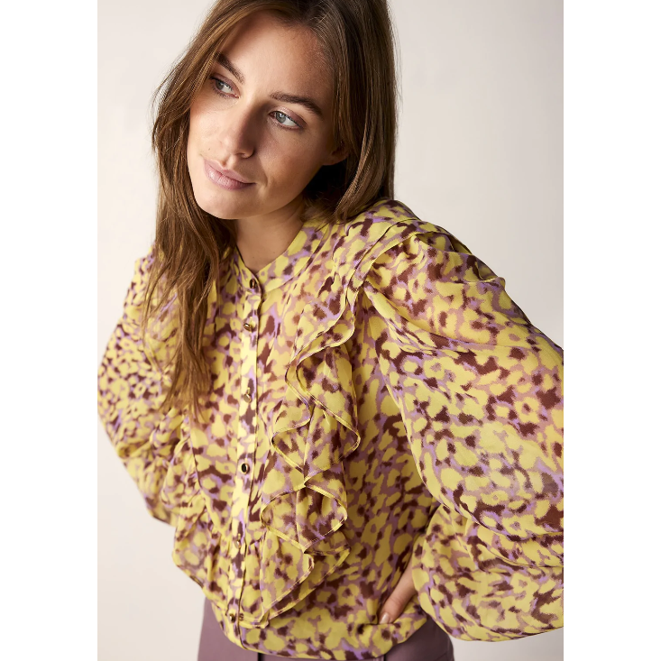 Summum Woman Ladies Blouse with Ruffles - Yellow/Purple