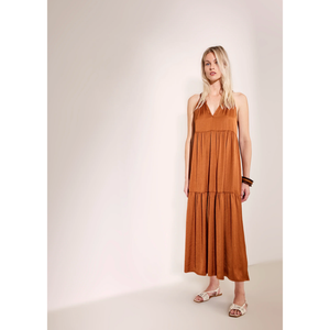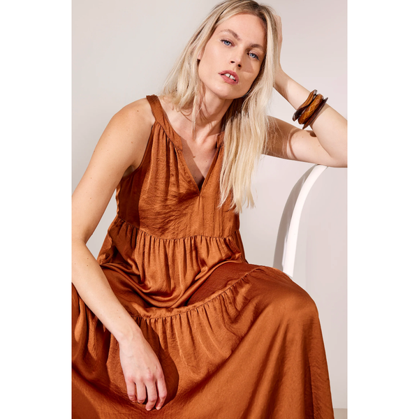 Summum Woman Ladies Shiny Sleevless Dress - Brown