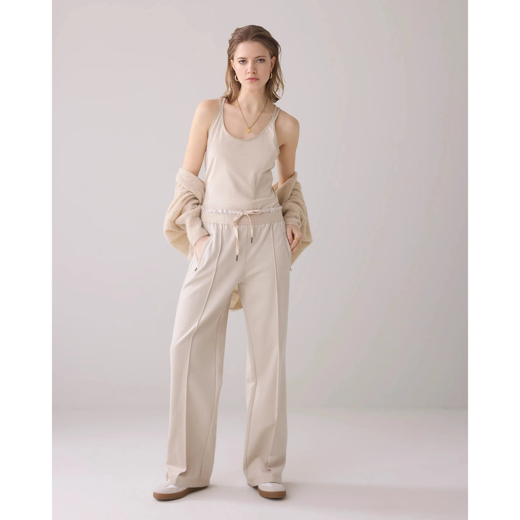 Summum Woman Ladies Wide Leg Punto Milano Trousers - Pebble Beige