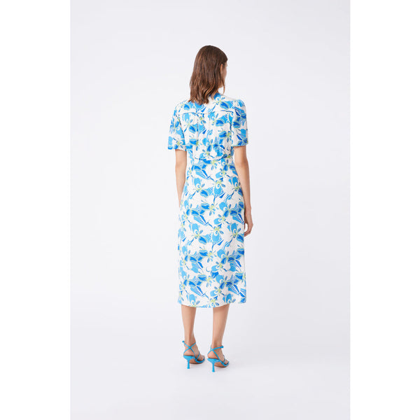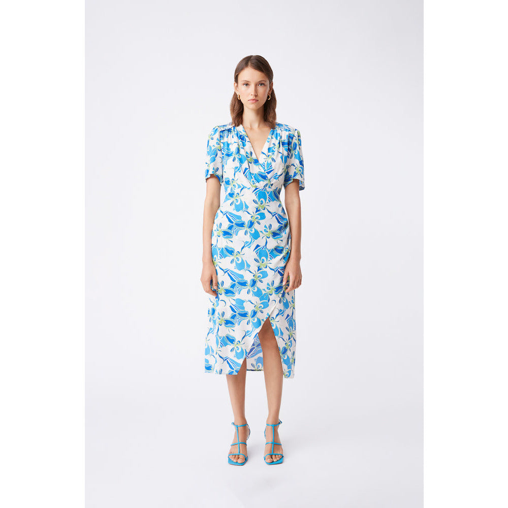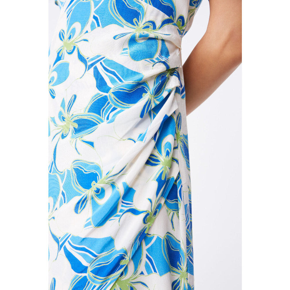 Floral print long dress -V-neck -Hidden right side closure -Short sleeves -Left side slot
