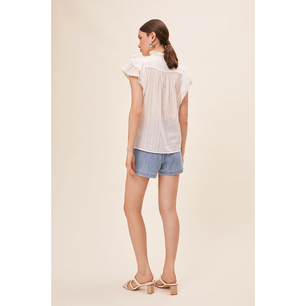 -Ruffled short sleeves