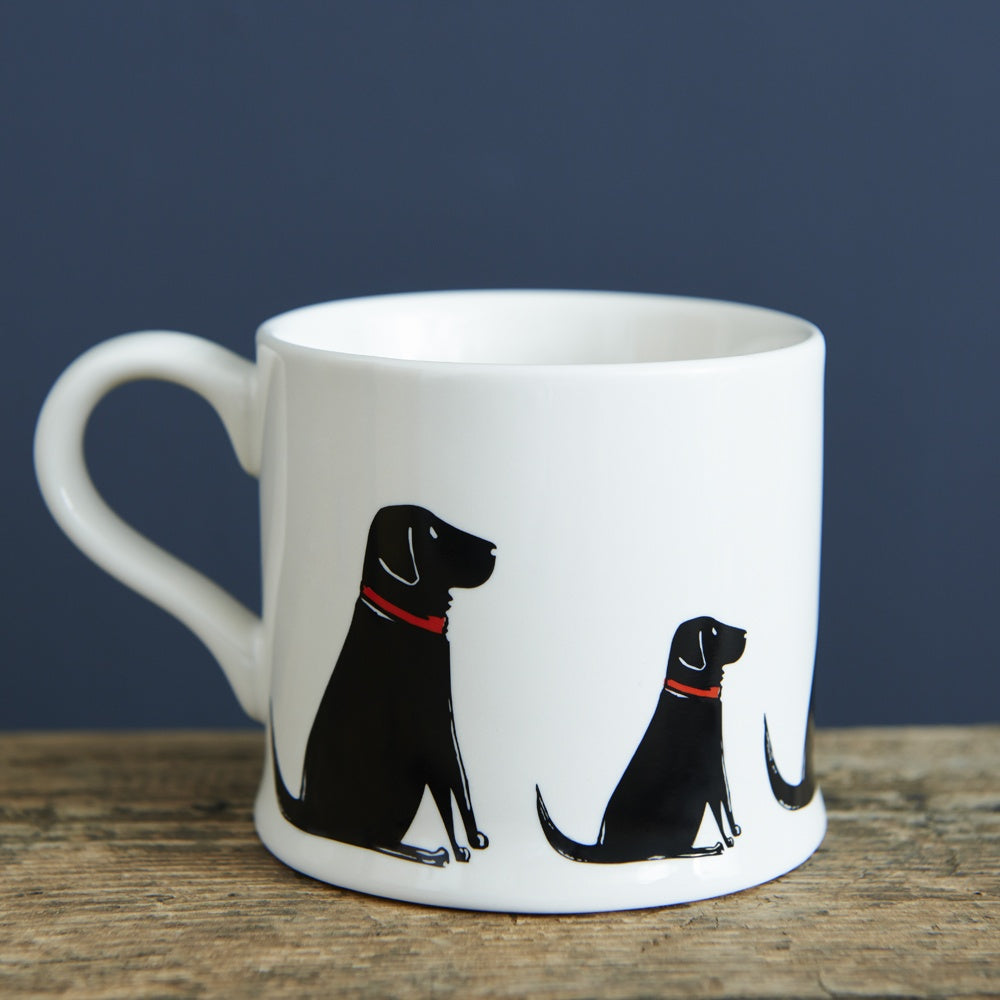 This adorable Sweet William Black Labrador mug features a repeat pattern of small and large Labradors all the way around the mug.